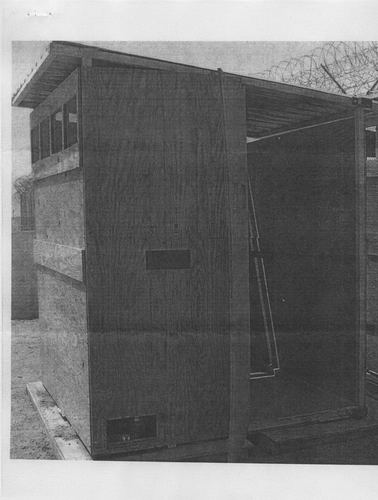 美軍公布了被官方名稱為“隔離箱”的箱子的照片,犯人可以被關(guān)在箱子里12小時(shí)。軍方公布的三張黑白照片展示了木制箱子的基本結(jié)構(gòu),一些箱子的長(zhǎng)寬高分別只有0.9米、0.9米、1.8米。伊拉克衛(wèi)生部的資料顯示,伊拉克普通男性的身高為1.7米,這意味著伊拉克犯人在被關(guān)入箱子里后的活動(dòng)空間將非常有限。