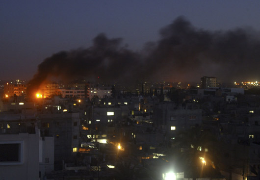 3日,以色列南部港口城市艾斯卡蘭受到哈馬斯火箭彈襲擊,以總理奧爾默特宣稱要“嚴(yán)厲回?fù)簟薄?罩写驌綦S后進(jìn)行。目擊者稱,以色列空軍對(duì)加沙南部的走私物資通道進(jìn)行了打擊。之前,當(dāng)?shù)鼐用窠拥揭攒姺降氖謾C(jī)短信,要求當(dāng)?shù)鼐用癯冯x這一地區(qū)。