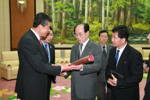 中新網(wǎng)5月6日電 中國駐朝鮮大使館網(wǎng)站消息,5月5日,朝鮮最高人民會議常任委員會委員長金永南受朝鮮勞動黨總書記金正日的委托,在萬壽臺議事堂會見了中國駐朝鮮大使劉曉明。劉大使請金永南委員長轉(zhuǎn)達(dá)中共中央總書記、國家主席胡錦濤致金正日總書記的口信和親切問候。金永南委員長表示感謝并允轉(zhuǎn)達(dá),同時也請劉大使轉(zhuǎn)達(dá)金正日總書記對胡錦濤總書記的親切問候。