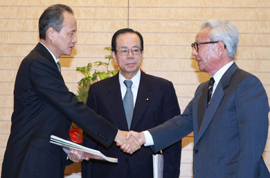 中新網(wǎng)6月12日電 據(jù)中國外交部網(wǎng)站消息,6月12日,日本兵庫縣前知事、紀(jì)念兵庫震災(zāi)21世紀(jì)研究機(jī)構(gòu)理事長貝原俊民在日本首相官邸向中方贈(zèng)送了阪神地震災(zāi)后重建資料。日本首相福田康夫、中國駐日本大使崔天凱等出席贈(zèng)送儀式。