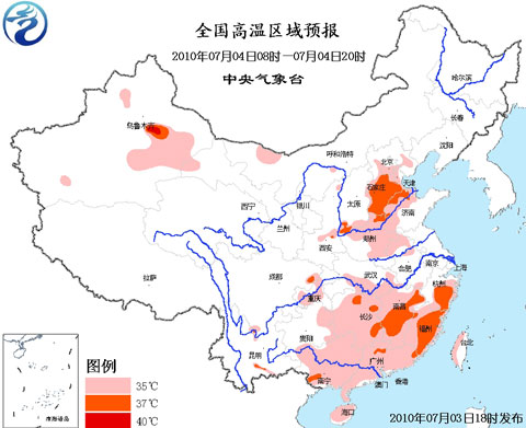 預計,4日白天,江漢南部、江南大部、華南大部、貴州東部、重慶中西部、四川盆地東北部等地有35~37℃、局地38~40℃的高溫天氣。另外,北京中南部、河北大部、山西南部、河南北部和東部、山東西部、安徽北部、陜西關中地區(qū)等地的部分地區(qū)也將有35~37℃、局地38~39℃的高溫天氣。