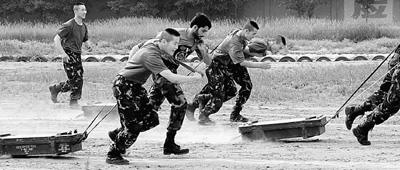 在蘭州軍區(qū)特種大隊綜合訓練場,氣溫高達36℃,但中巴“兄弟連”官兵的訓練熱情依然高漲。
