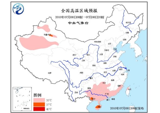 中新網(wǎng)7月8日電 中央氣象臺8日6時繼續(xù)發(fā)布高溫黃色預警,預計,今天白天,貴州南部的部分地區(qū)、湖南中南部、江西中部偏西地區(qū)、福建東部、廣東、廣西、海南、臺灣西北部等地有35~38℃的高溫天氣。
