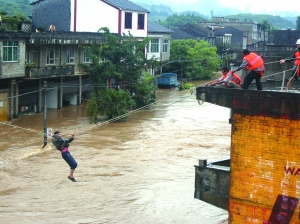 位于三峽庫(kù)區(qū)的重慶市萬(wàn)州區(qū)分水鎮(zhèn)9日凌晨開(kāi)始遭受強(qiáng)降雨襲擊,引發(fā)山洪、泥石流、山體滑坡等自然災(zāi)害。強(qiáng)降雨導(dǎo)致大量農(nóng)田被淹、莊稼被毀,分水鎮(zhèn)及所轄的三正場(chǎng)鎮(zhèn)被淹,積水深達(dá)1.2米。暴雨導(dǎo)致分水鎮(zhèn)6000多間房屋被淹,600多間房屋倒塌,1.5萬(wàn)人受災(zāi)并被緊急安全轉(zhuǎn)移。
