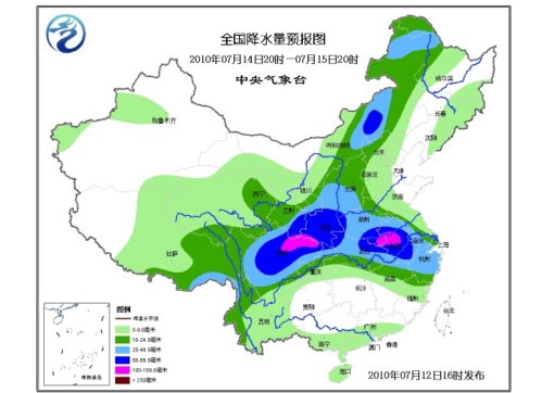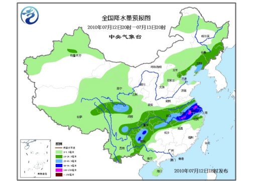 中新網(wǎng)7月12日電 據(jù)中央氣象臺網(wǎng)站消息,未來三天,青藏高原東部及其以東大部地區(qū)有一次明顯降水天氣過程,其中,黃淮西部、江漢、江淮、江南北部、四川盆地等地有大到暴雨,部分地區(qū)有大暴雨;青海東南部、內(nèi)蒙古中東部、黑龍江西北部、吉林東部、山西西南部、陜西大部、甘肅南部和東部、貴州大部、西藏東南部、云南西部和南部等地的部分地區(qū)有大雨,局地有暴雨;上述部分地區(qū)并伴有短時雷雨大風(fēng)或冰雹等強對流天氣。