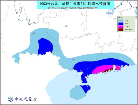 受其影響,21日晚上到22日白天,南海中北部海面、海南東部和北部沿海、瓊州海峽、北部灣大部海面、廣東沿海、廣西沿海將有7-9級大風,部分海域或地區(qū)風力可達10-11級,“燦都”中心經(jīng)過的附近海面或地區(qū)的風力可達12-13級。廣東中南部、海南、廣西東南部將有大雨或暴雨,其中廣東沿海和海南北部的局部地區(qū)有大暴雨或特大暴雨。