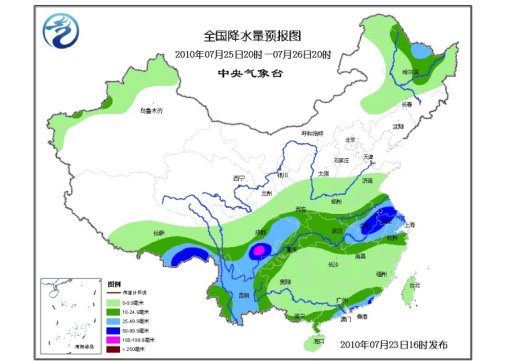 24日20時至25日20時,新疆西南部、青海東北部、西藏南部、西北地區(qū)東部、內(nèi)蒙古東北部、黑龍江西部、吉林西部、華北西南部、黃淮西部和南部、江淮、江漢、江南、華南、西南地區(qū)等地有小到中雨或陣雨,其中,四川盆地、陜西中部和西南部、安徽中部偏西地區(qū)、湖北東北部、浙江東部沿海、福建東南部、廣東東部、云南大部有大雨或暴雨,四川盆地西部的局部地區(qū)有大暴雨;上述地區(qū)局地并伴有短時雷雨大風等強對流天氣。新疆北部和西部、甘肅西部、內(nèi)蒙古中西部等地有4~5級風,新疆山口地區(qū)風力可達6~7級。南海南部有5~6級西南風。