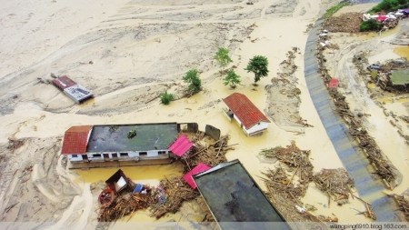 8月12日22時30分左右,綿竹市清平鄉(xiāng)境內(nèi)發(fā)生強降雨,在地震中被山體掩埋的王家溝突發(fā)特大泥石流,將綿遠(yuǎn)河堵塞,造成河水改道,將位于河道下游約1公里處的清平鄉(xiāng)部分場鎮(zhèn)淹沒,大量群眾被洪水圍困。