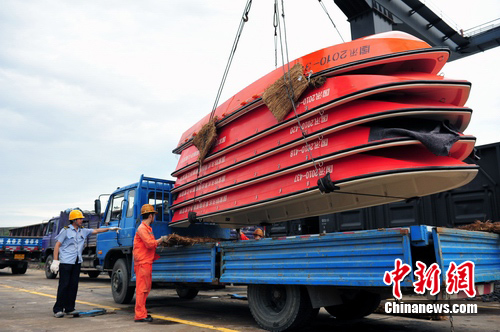 據(jù)了解,這批發(fā)往災(zāi)區(qū)的防汛物資包括沖鋒舟80艘、橡皮舟40只、船外機(jī)120臺(tái)、救生衣1萬(wàn)件、鉛絲網(wǎng)兜4000個(gè)、查險(xiǎn)燈500盞等,于8月19日通過(guò)鐵路開(kāi)行“搶”17次專(zhuān)列發(fā)運(yùn)到成都東貨場(chǎng)進(jìn)行轉(zhuǎn)運(yùn)。