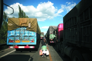 據(jù)煤車司機(jī)說,他們進(jìn)京只能走京藏高速,以前遇有下雨或車禍,也會(huì)堵車,這次大堵車只是以前矛盾的集中爆發(fā)。他們認(rèn)為,煤車集中于京藏高速,與簡單的遇超則罰有關(guān),“我們也不想超載,我們也想遵守規(guī)章制度,可是,遵守了,這活兒也就干不下去了,誰替我們想過?”煤車司機(jī)說。