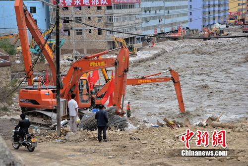 中新網(wǎng)8月24日電 (馬燕清 侯志紅) 8月8日甘肅省舟曲縣的特大山洪泥石流造成穿城而過(guò)的白龍江河床抬高,水位提升,淹沒(méi)了大半個(gè)縣城。如今洶涌的白龍江又有了新變化。