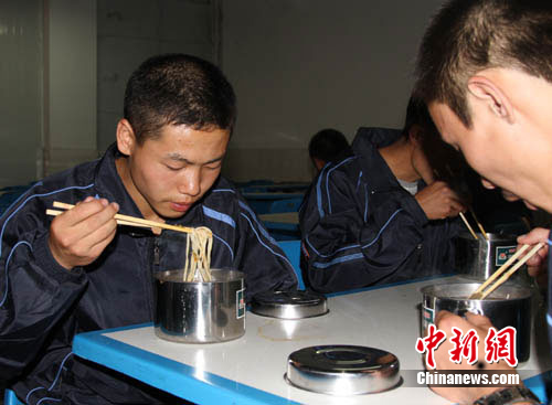 端著學(xué)校統(tǒng)一配發(fā)的新飯盒,孩子們?cè)凇毙录摇暗谝活D餐開灶了!霸缇吐犝f蘭州的牛肉面非常有名”,高一(2)班的高興平毫不猶豫的走進(jìn)了一樓食堂!拔兜勒姘!”高興平豎著大拇指說,沒想到來這里吃得第一頓飯就是牛肉面。