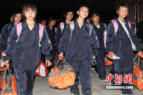 經(jīng)過10小時(shí)20分鐘的車程,經(jīng)過406公里的顛簸,下午19點(diǎn)20分,6輛大巴車緩緩駛?cè)胩m州科技外語(yǔ)中學(xué)的大門,舟曲一中高一年級(jí)240名學(xué)生和12名教師第一批平安到達(dá)“新家”。