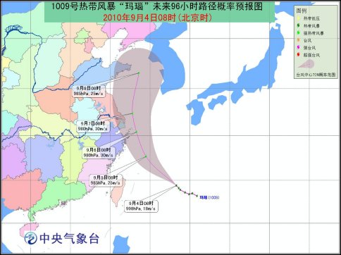 預(yù)計(jì),“瑪瑙”將以每小時(shí)15-20公里的速度向西北方向移動(dòng),4日夜間進(jìn)入東海南部海面,爾后繼續(xù)向中國華東沿?拷,強(qiáng)度逐漸增強(qiáng)。