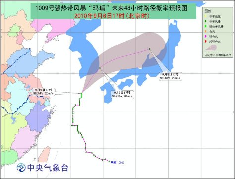 由于“瑪瑙”已遠(yuǎn)離我國(guó)近海,對(duì)我國(guó)海區(qū)的影響趨于減弱,因此解除臺(tái)風(fēng)藍(lán)色預(yù)警。但受“瑪瑙”、西南季風(fēng)和南下冷空氣的共同影響,9月6日20時(shí)到7日20時(shí),渤海灣、渤海海峽、黃海北部部分海域、黃海中部和南部的偏東海域、東海東北部、臺(tái)灣以東洋面將有6-8級(jí)大風(fēng),“瑪瑙”中心經(jīng)過的附近海域或地區(qū)的風(fēng)力可達(dá)9-10級(jí),陣風(fēng)11-12級(jí)。