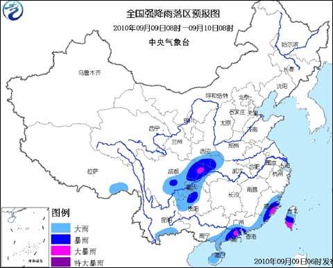 中央氣象臺(tái)2010年9月9日06時(shí)繼續(xù)發(fā)布暴雨藍(lán)色預(yù)警: