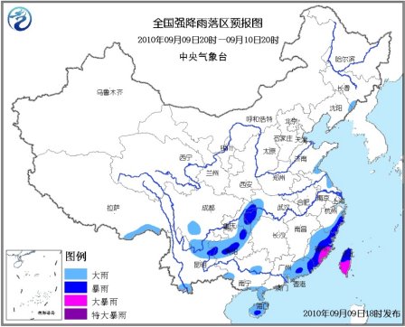 中新網(wǎng)9月9日電 據(jù)中央氣象臺網(wǎng)站消息,中央氣象臺9月9日18時繼續(xù)發(fā)布暴雨藍(lán)色預(yù)警:9月9日20時到10日20時,川西高原南部、重慶東部、湖北西南部、貴州中北部和西部、云南東北部、浙江東部沿海和南部、福建、廣東中東部和西南部、廣西南部、海南、臺灣等地有大雨或暴雨,其中,福建東南部、臺灣南部等地局部有大暴雨;另外,西藏東南部、江蘇東北部等地的部分地區(qū)有大雨;上述地區(qū)局部并伴有短時雷雨大風(fēng)或冰雹等強對流天氣。