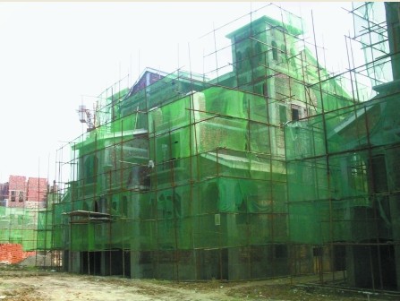 小區(qū)進(jìn)門(mén)處,碩大的工程規(guī)劃圖引起了記者的注意:這個(gè)小區(qū)的規(guī)劃是成棟的聯(lián)排別墅,廣告宣傳語(yǔ)標(biāo)有‘西班牙風(fēng)格別墅’字樣。小區(qū)內(nèi)建筑工人正在施工。