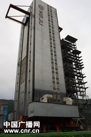 幽靜的山谷中,即將承擔(dān)嫦娥二號(hào)衛(wèi)星發(fā)射任務(wù)的2號(hào)發(fā)射塔就在記者面前,在這里,記者做得最多的動(dòng)作就是——仰起頭,仰望這座高塔。