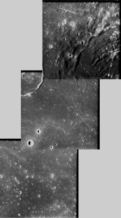 最上面的幀圖拍攝于2006年1月1日,當(dāng)時距離月球表面約1087千米,分辨率為98 m/pixel,中心位于西經(jīng)40.2度,南緯25.9度;另外兩張都拍攝于2006年1月13日,拍攝距離、分辨率和中心分別為1069千米,97 m/pixel,西經(jīng)40.2度,南緯27.3度(中圖)和1050千米,95 m/pixel,西經(jīng)40.2度,南緯28.8度(下圖)。