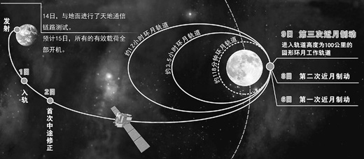 10月9日11時(shí)32分,嫦娥二號衛(wèi)星成功實(shí)施第三次近月制動(dòng),順利進(jìn)入軌道高度為100公里的圓形環(huán)月工作軌道。按照預(yù)定計(jì)劃,嫦娥二號衛(wèi)星上搭載的有效載荷陸續(xù)開始工作,進(jìn)行科學(xué)探測活動(dòng)。