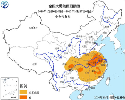 中新網10月16日電 中央氣象臺今晨6時繼續(xù)發(fā)布大霧藍色預警: