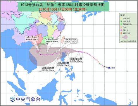 中新網(wǎng)10月17日電 據(jù)中央氣象臺預(yù)報,今年第13號強(qiáng)臺風(fēng)“鲇魚”于16日晚加強(qiáng)為強(qiáng)臺風(fēng),17日上午8時再度加強(qiáng)為超強(qiáng)臺風(fēng),成為今年最強(qiáng)的臺風(fēng)。受其影響,未來三天,中國南部海區(qū)都將掀起7~9級的大風(fēng)。