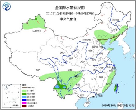 19日08時至20日08時,新疆北部、內蒙古東南部、吉林東部、遼寧等地有小雨(雪)或雨夾雪;河北東北部、山東半島、西藏東南部、四川中南部、重慶中南部、云南、貴州西部和北部、浙江東部、福建中東部、廣東東部、臺灣等地有小到中雨或陣雨,其中臺灣東部有大到暴雨,局部大暴雨;上述地區(qū)局部并伴有短時雷雨大風等強對流天氣。新疆北部、內蒙古中東部、遼寧南部、山東半島等地有4~5級風。臺灣海峽、巴士海峽、巴林塘海峽、南海大部、福建沿海、廣東東部沿海等海域有7~9級大風,陣風可達10~12級,其中南海東北部和中部偏東海域有10~12級大風,陣風可達13~14級,“鲇魚”中心經(jīng)過的附近海面風力有13~16級,陣風可達17級以上;東海大部、北部灣有6~7級東北風;南海南部有5~7級偏西風。