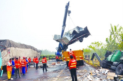 昨天上午8時(shí)許,受大霧影響,鹽徐高速公路建湖境內(nèi)發(fā)生連環(huán)追尾事故,15輛車自西向東撞到一起。記者獲悉,事故現(xiàn)場造成一人死亡,多人受傷。鹽徐高速也一度受到嚴(yán)重影響。