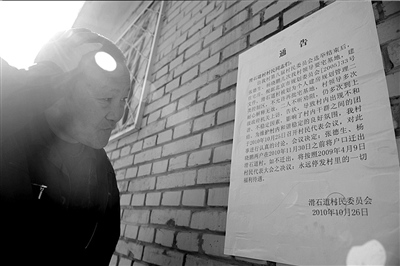 因兩名村民多次到鎮(zhèn)政府、區(qū)政府舉報本村問題,門頭溝區(qū)龍泉鎮(zhèn)滑石道村村委會于10月26日發(fā)出通告,要求兩戶村民在今年11月30日之前,將戶口遷出滑石道村,否則,永遠(yuǎn)停發(fā)村里的一切福利。
