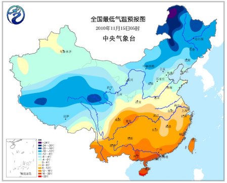 在兩股冷空氣輪番“轟炸”后,預(yù)計15日凌晨,西北地區(qū)、華北、東北地區(qū)最低氣溫都將降至0℃以下,內(nèi)蒙古中東部、華北北部、東北地區(qū)大部、青藏高原大部將降至零下8℃以下,內(nèi)蒙古東北部將達零下20℃以下;黃淮、江淮大部最低氣溫在1~4℃,西南地區(qū)東部、江南大部在5~10℃,華南大部12~16℃,局地18~20℃。