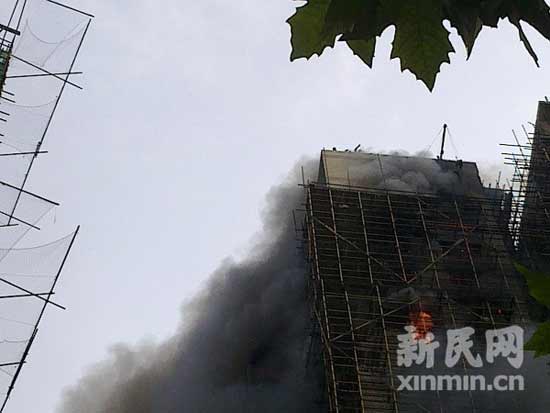 16時(shí)20分,大火持續(xù)到現(xiàn)在尚未被撲滅,大樓內(nèi)仍有居民尚未逃出,頂樓還有不少被困居民在等待救援。新民網(wǎng)記者在現(xiàn)場看見,經(jīng)過大火猛烈的炙烤,已經(jīng)有腳手架在往下掉落了,現(xiàn)場十分危險(xiǎn)。
