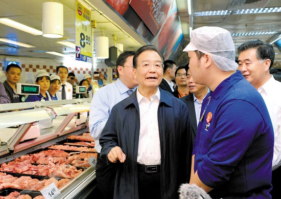 溫家寶邊看邊問,了解物價變化對市民生活的影響。他說,市場供求和物價關(guān)系群眾的切身利益,必須高度重視。國務(wù)院正在擬定措施,抑制價格過快上漲。他叮囑廣州市有關(guān)負(fù)責(zé)人要千方百計保持供貨渠道暢通,保證市場供應(yīng),加強監(jiān)管,維護市場秩序。