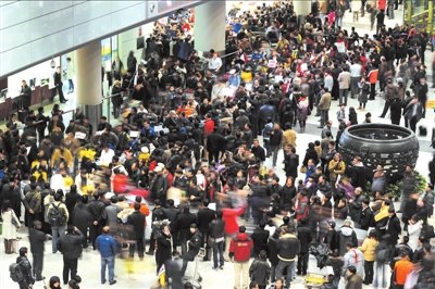 昨天下午,大量乘客滯留在候機(jī)廳內(nèi),延誤通知不斷重播,多數(shù)乘客表示不滿。乘客孫女士氣憤地說(shuō),他們一行20人從北京飛往上海,原定上午9點(diǎn)半起飛,已經(jīng)在此處等候了8個(gè)小時(shí),“剛一問(wèn),對(duì)方說(shuō)可能要明天起飛”,此話引起眾人不滿,多人要求機(jī)場(chǎng)方解決食宿問(wèn)題,但對(duì)方始終稱“需要協(xié)調(diào)”。