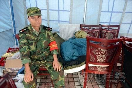黃凱,寶興縣靈關(guān)鎮(zhèn)中壩村民兵連長,1年前開辦了自己的建筑工程隊(duì),地震不但讓工程隊(duì)不復(fù)存在,也讓他不顧家里的妻兒老小,抗震救人,分發(fā)物資。雖然工作點(diǎn)離家僅兩三分鐘路程,可黃凱無數(shù)次過家門而不入,甚至都沒和家人多說上兩句,“曉得你是為了大家,但你媳婦要照顧我和兩個(gè)小的,她也不容易啊。”
