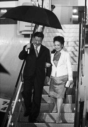 當?shù)貢r間晚7時10分許,習近平乘坐的專機抵達西班牙港皮亞科國際機場。這是中國最高領導人首次對特立尼達和多巴哥以及英語加勒比國家進行國事訪問。特立尼達和多巴哥總統(tǒng)卡莫納夫婦、總理比塞薩爾冒雨親自到機場迎接習近平和夫人彭麗媛的到來。