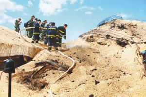 6月1日,消防官兵在中儲(chǔ)糧林甸直屬庫(kù)清理火災(zāi)事故現(xiàn)場(chǎng)。