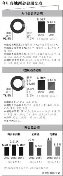 一年一度的省級地方兩會,近期密集召開。截至昨日,全國31個省份中,除安徽、海南、湖南將會期安排在春節(jié)后外,已有13個省份的兩會閉幕,15個正在召開。這是2012年年底“八項規(guī)定”出臺后的第二個地方兩會。嚴規(guī)之下,會期減短、不擺鮮花、不安排車輛接送等規(guī)定動作得到貫徹落實。此外,不設煙灰缸、邀請農民工代表旁聽等自選動作,也在會場內外頻現。專家認為,節(jié)儉、務實、高效是2014年全國地方兩會的新特點。