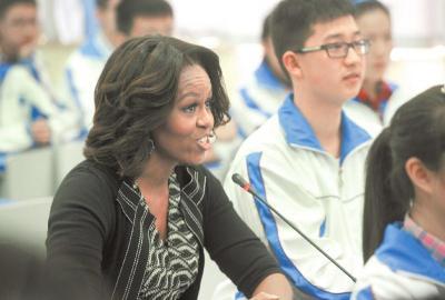 3月25日,美國總統(tǒng)奧巴馬夫人米歇爾·奧巴馬走進成都七中,熱情洋溢地發(fā)表了她首次訪華期間的第二場演講!傲己玫慕逃钦l都無法從你身上拿走的東西!”通過分享自己的求學經歷,米歇爾鼓勵年輕學子把握機會努力學習,用“才華、創(chuàng)造力和能量”解決人類共同面臨的問題。