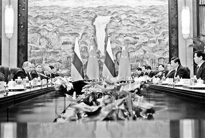 習(xí)近平指出,中俄合作是全方位、多層次的。雙方要再加把勁,努力實(shí)現(xiàn)2015年前雙邊貿(mào)易額達(dá)到1000億美元的目標(biāo)。對(duì)中俄務(wù)實(shí)合作,我們既推動(dòng)量的提升,也重視質(zhì)的跨越,通過(guò)建立中俄投資合作委員會(huì)、高級(jí)別專(zhuān)項(xiàng)小組等機(jī)制,推進(jìn)經(jīng)貿(mào)、投資、能源、高技術(shù)、航空航天、基礎(chǔ)設(shè)施建設(shè)、民生等領(lǐng)域戰(zhàn)略性大項(xiàng)目合作。要對(duì)接絲綢之路經(jīng)濟(jì)帶和俄羅斯跨歐亞鐵路建設(shè),拉動(dòng)兩國(guó)經(jīng)貿(mào)往來(lái)和毗鄰地區(qū)開(kāi)發(fā)開(kāi)放,共享歐亞大通道和歐亞大市場(chǎng)。
