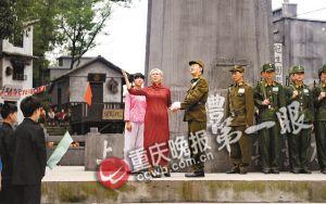 ▲白沙鎮(zhèn)情景再現(xiàn):江津籍抗日將領(lǐng)夏仲實(shí)跪母出征江津區(qū)委宣傳部供圖