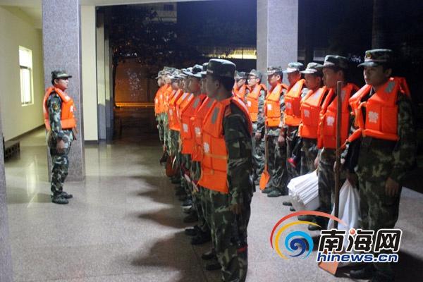 9月16日凌晨,武警海口市支隊(duì)官兵快速集結(jié)趕往災(zāi)區(qū)。(特約記者楊瑞明攝)