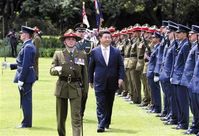 20日,國家主席習(xí)近平在惠靈頓出席新西蘭總督邁特帕里舉行的歡迎儀式。