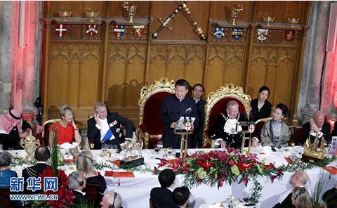 10月21日晚上,習近平在倫敦金融城市長晚宴上發(fā)表演講。