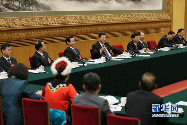 3月7日,中共中央總書(shū)記、國(guó)家主席、中央軍委主席習(xí)近平參加十二屆全國(guó)人大四次會(huì)議黑龍江代表團(tuán)的審議。 新華社記者 蘭紅光 攝