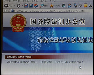 今天距離國務(wù)院法制辦《職工帶薪年休假規(guī)定(草案)》的征求意見稿發(fā)布,已經(jīng)過去了三天,那么最新的回饋如何呢?記者登陸了國務(wù)院法制辦的網(wǎng)站,發(fā)現(xiàn)短短三天,參與發(fā)表意見的人數(shù)超過了3600人,法制辦的工作人員告訴記者,同期在網(wǎng)上征求意見的法規(guī)草案還有一些,但是對這些草案參與發(fā)表意見的人數(shù)并不多,最多的195人,最少的只有18人?梢,相比之下帶薪休假草案本身的關(guān)注度遠(yuǎn)比其他法規(guī)草案高出很多。
