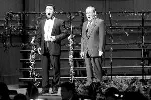 除了李叔同,李嵐清尊敬的中國音樂家還有小提琴家馬思聰和二胡演奏家華彥鈞,《思鄉(xiāng)曲》和《二泉映月》是兩人各自的代表作。在講座現(xiàn)場,李嵐清還與男中音歌唱家張峰一同深情演唱了由劉半農(nóng)作詞、趙元任作曲的《教我如何不想他》!坝腥税岩魳房醋骷记桑皇菍徝赖臉啡,所以他們聽不懂。其實,聽不懂是因為他們聽少了,現(xiàn)在很多演奏家都用通俗的方式來演繹經(jīng)典———‘鋼琴王子’克萊德曼的《致愛麗絲》其實是貝多芬的作品,S.H.E的《不想長大》用了莫扎特《第四十交響曲》中的旋律。我不是說古典作品不能被借用,但是對經(jīng)典音樂的惡搞是極不妥當?shù)。中國音樂家要用現(xiàn)代人聽得懂的語言,用傳統(tǒng)的中國文化來寫音樂,譚盾、葉小綱做的就是這樣的事情……不能隨意讓經(jīng)典音樂PK通俗音樂!