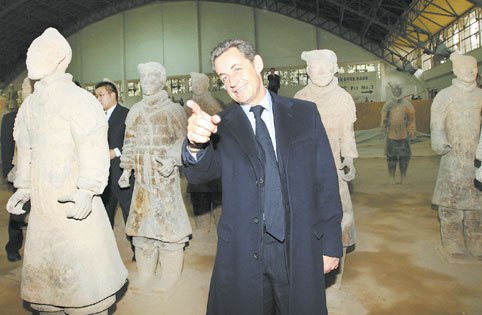 11月25日,應(yīng)國(guó)家主席胡錦濤邀請(qǐng)對(duì)我國(guó)進(jìn)行國(guó)事訪問(wèn)的法國(guó)總統(tǒng)尼古拉·薩科齊抵達(dá)我省,開(kāi)始其就任總統(tǒng)后的首次訪華之旅。當(dāng)天,抵達(dá)陜西的薩科齊總統(tǒng)參觀了秦始皇兵馬俑博物館和漢陽(yáng)陵博物館。
