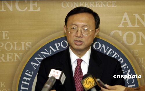 出席中東問題安納波利斯會議的中國外長楊潔篪27日對中國媒體表示,中國政府非常重視安納波利斯會議,認為這次會議是國際社會推動解決巴以問題的重大努力。