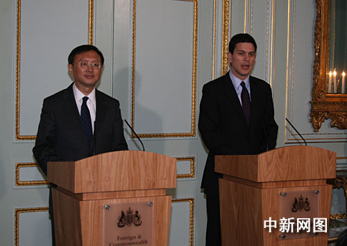 雙方還就伊朗核、朝鮮半島核、蘇丹達(dá)爾富爾等問題交換了看法。會(huì)談后,楊潔篪和米利班德共同會(huì)見記者,米利班德指出,英國堅(jiān)持一個(gè)中國政策,不支持臺(tái)灣當(dāng)局搞“入聯(lián)公投”,不贊成不理智行為。
